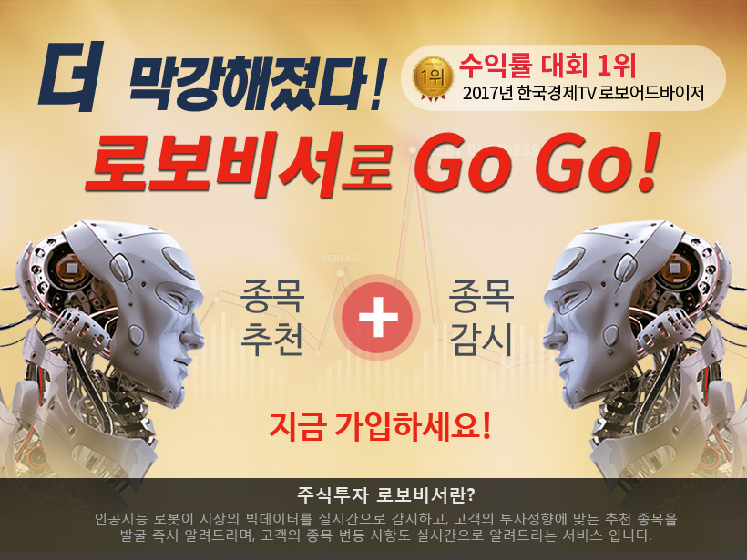 개인정보 수집/이용 및 광고성 정보 수신동의 “주식투자 로보비서(이하, “서비스”라 합니다.)”의 서비스 제공 및 이용과 관련하여 본인은 본 동의 내용을 숙지하였으며, 이에 따라 본인의 개인정보를 아래의 목적으로 ㈜씽크풀이 수집 및 이용하고, 본인에게 전자적 전송 매체를 통하여, 마케팅 등의 목적으로 개인에게 최적화된 광고 또는 정보를 다음과 같이 전송하는 것에 동의합니다. 1) 개인정보 수집 및 이용 목적 ① “서비스” 개발 및 개선, 문의 등에 대한 개인 상담 및 정보 제공 ② 신규 서비스나 이벤트, 제3자의 상품 또는 “서비스” 관련 개인 맞춤형 광고•정보 전송 2) 수집 항목 : 이동 전화 번호, 동의 경로/일시 3) 보유 및 이용 기간 : 별도 동의 철회 시까지 - 단, 관련 법령의 규정에 따라 보존할 필요가 있을 경우, 해당 기간까지 보존함 ※ 본 동의는 ”서비스”의 선택적 기능 제공을 위한 개인정보 수집/이용에 대한 동의로서, 동의하지 않더라도 “서비스” 이용이 가능합니다. ※ 법령에 따른 개인정보의 수집/이용, 계약의 이행/편의 증진을 위한 개인정보 처리위탁 및 개인정보 처리와 관련된 일반 사항은 “서비스”의 개인정보 처리방침에 따릅니다. 1. “서비스”에서는 고객이 수집 및 이용에 동의한 개인정보를 활용하여, 전자적 전송 매체(MMS)를 통하여, ㈜씽크풀 및 제3자의 상품 또는 서비스에 대한 개인 맞춤형 광고 정보를 전송할 수 있습니다. 2. 고객이 본 수신 동의를 철회하고자 할 경우 고객센터를 통하여 수신 동의 철회 요청을 할 수 있습니다.